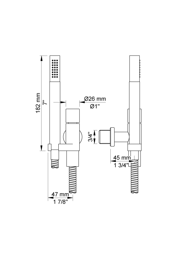 Vola T2 Håndbruser med metalslange og holder - I Rustfrit stål
