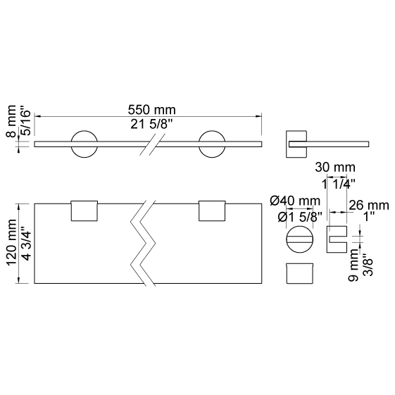 Vola T25G Glashylde samt holdere - Børstet krom holdere T25G-20