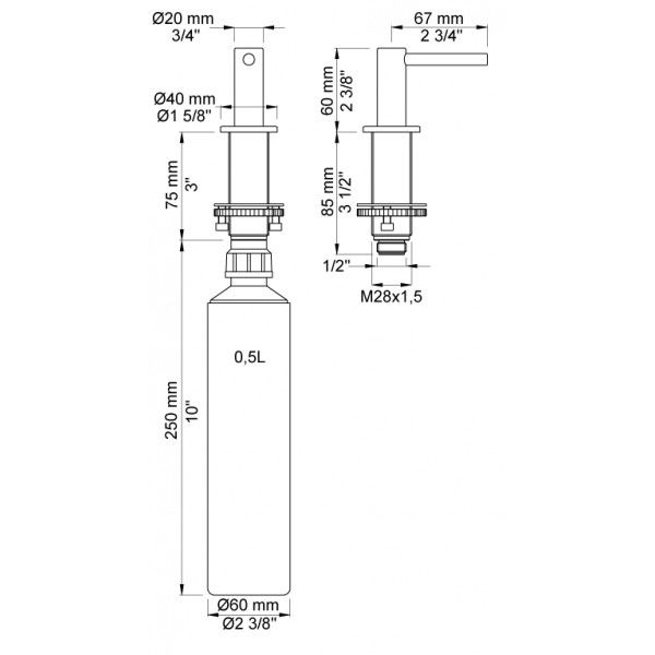 Vola T36 bordmonteret sæbedispenser, 67 mm udløb - I Messing