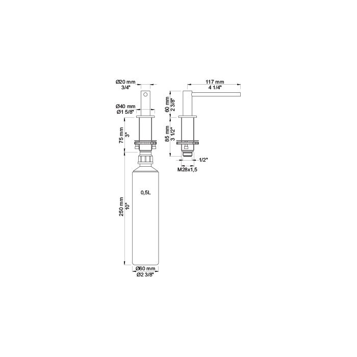 Vola T36L bordmonteret sæbedispenser, 107 mm udløb - I krom