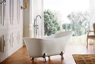 Samtlige af WellMore badekar udført i sanitetsakryl af høj kvalitet. Karrets overflade er indbydende lun og glat og den gode, farveægte sanitetsakryl betyder også, at karret – med den rette vedligeholdelse – vil fremstå sådan selv efter flere års brug.