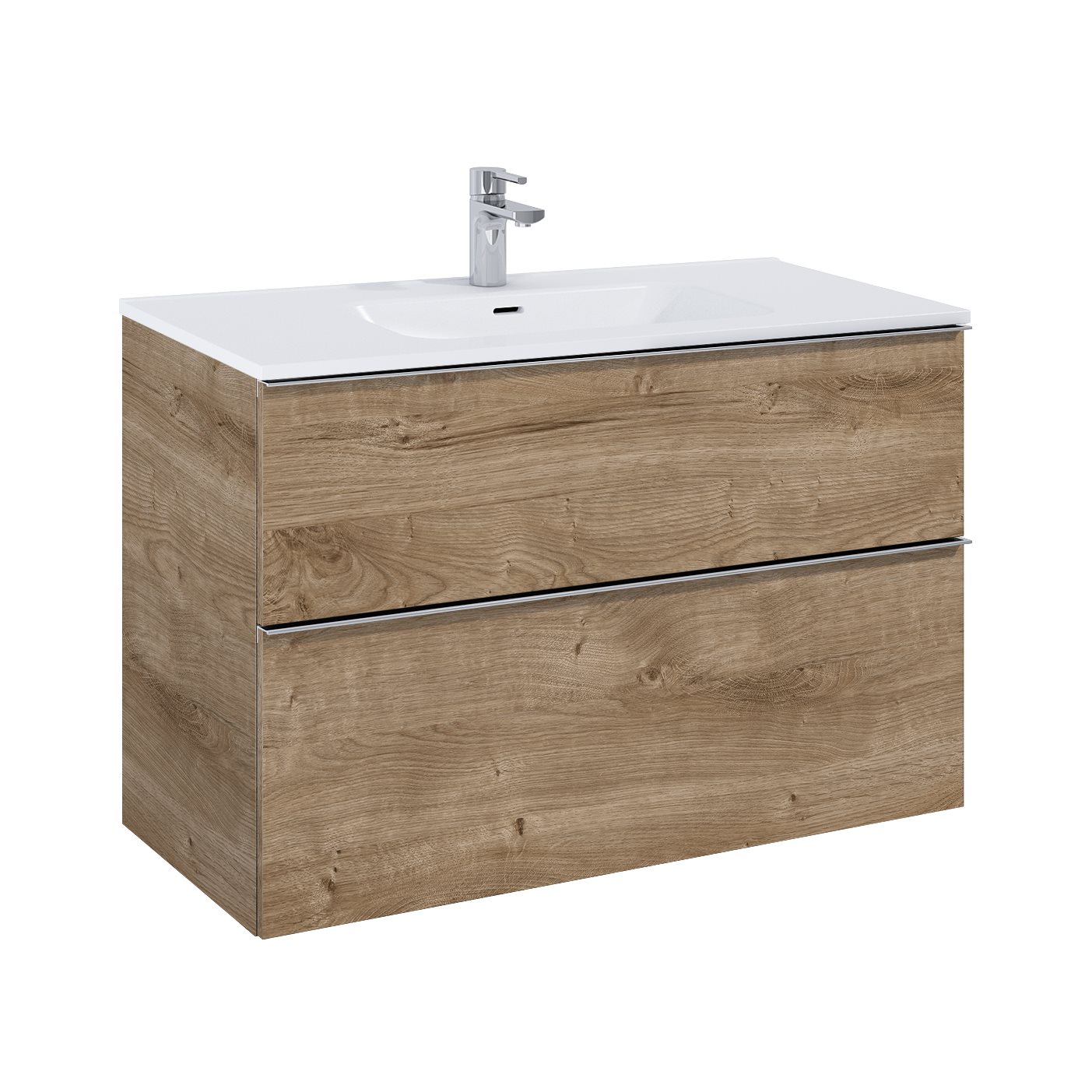 Wilma baderumsmøbel 100x45cm med 2 skuffer, Eg - (Greb er tilkøb)