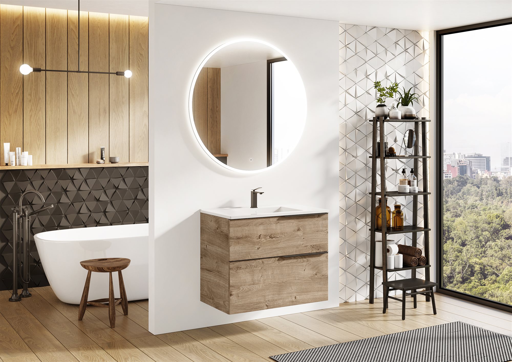 Møbelpakken har 2 skuffer som begge er med Soft Close, der sikrer en blød og lydløs lukning. Takket være det fulde udtræk af skufferne får du nem og hurtig adgang til alle dine ejendele. En praktisk ruminddeling i den øverste skuffe holder orden i badmøblet. Den nederste skuffe har en praktisk højde – den er lidt højere end den øverste, hvilket gør den ideel til placering af høje beholdere såsom rengøringsmidler, hårlak og shampoo.