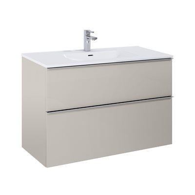 Wilma baderumsmøbel 100x45cm med 2 skuffer, lys grå / røg farvet - (Greb er tilkøb)