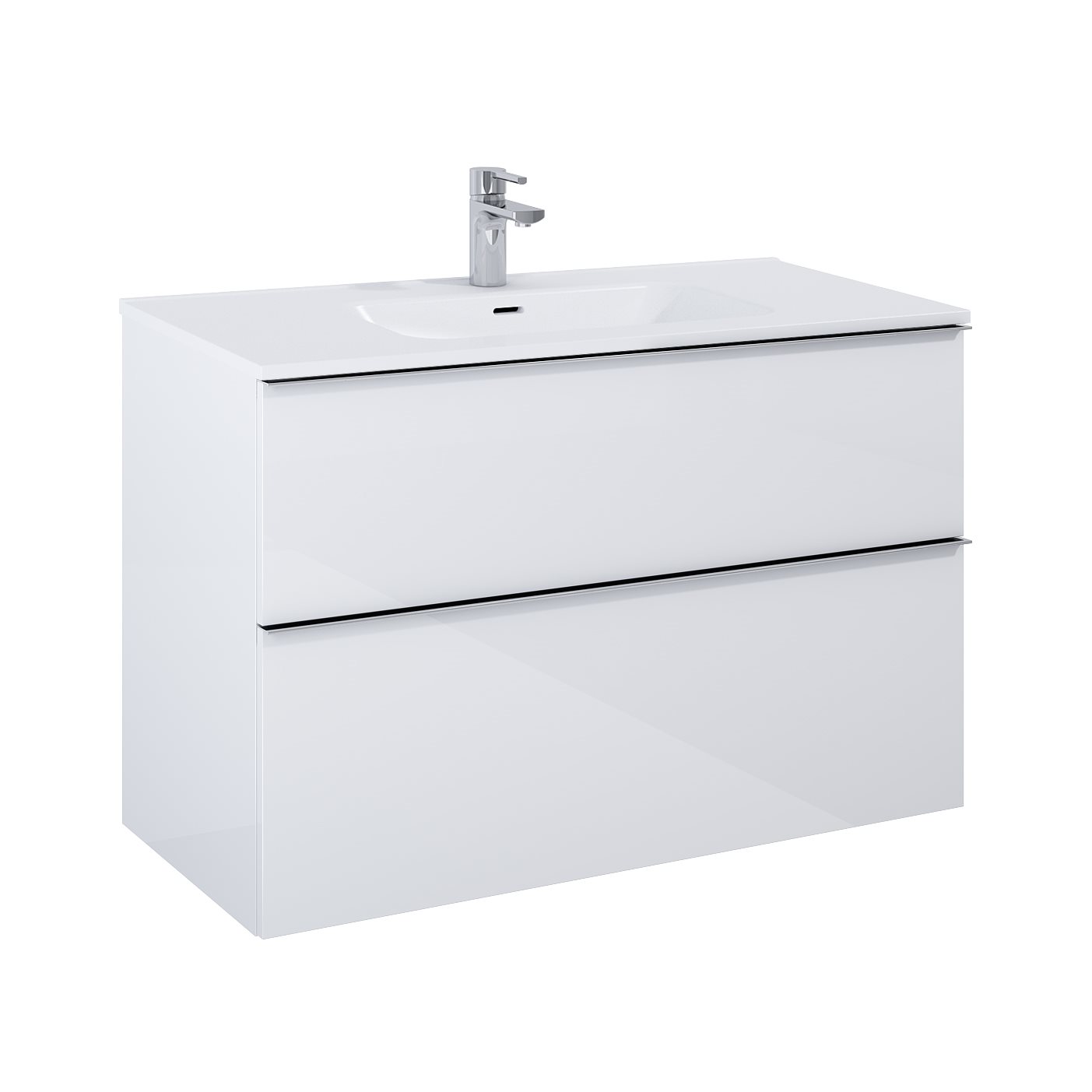 Wilma baderumsmøbel 100x45cm med 2 skuffer, hvid blank - (Greb er tilkøb)