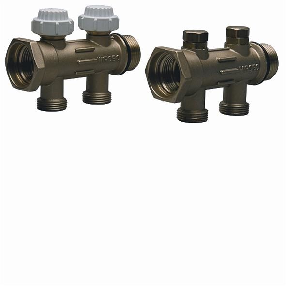 Wirsbo 1" gulvvarmefordelerrør " gulvvarmefordelerrør Leveres komplet med integrerede fremløbs- og indreguleringsventiler og koblinger til 20x2 mm Wirsbo eval- og pePEX-rør. Kan forsynes med telestat eller håndhjul.